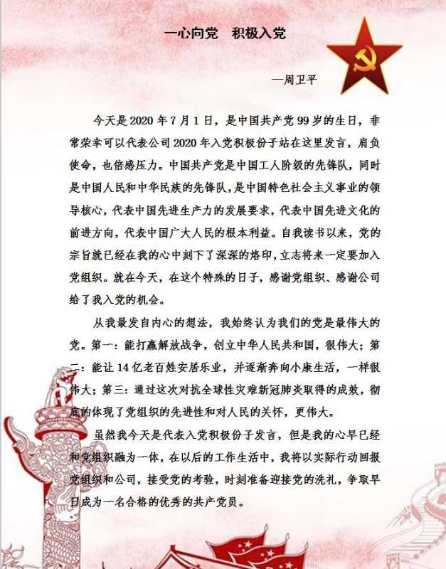 一心向黨 積極入黨——周衛(wèi)平